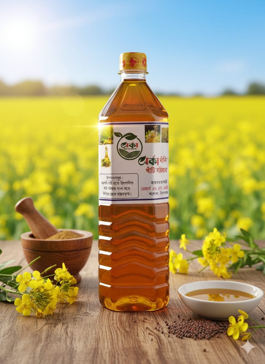 বগুড়ার ঘানিতে ভাঙা খাঁটি সরিষা তৈল। স্বাদে অনন্য, মানে উন্নত।